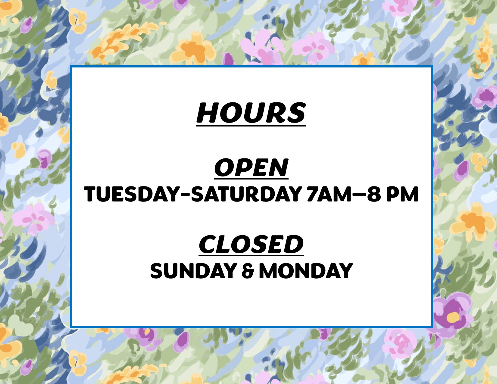 IF YOU WISH TO HAVE CURBSIDE PLEASE NOTE IT WHEN CHECKING OUT AND CALL WHEN YOU GET HERE
